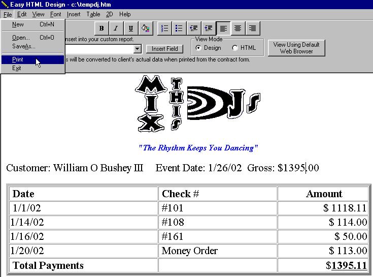 Step 19: Congratulations! Here is your new report. You will notice that the custom "fields" you entered into the report were converted to the client's actual data. Just imagine the wonderful custom forms you can create with this program. The only thing left to do is either Save this form to a file to email to your client, or print. To print, simply select "File" from the menu bar, then select "Print".