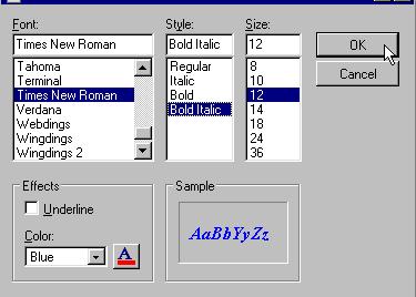 Step 9: You should now see the font dialog box with a variety of font options. Select your choice of font options to alter the appearance of your text, and then select the button "OK".