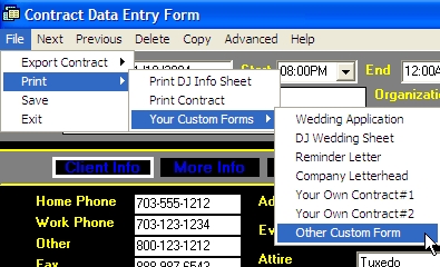 You can create any custom form that comes to your imagination. For example: You may want to create your own custom contract, wedding application, company letterhead, invoice, reminder letters, etc.. You can also use your own company logo and/or insert pictures to spice up the look of your custom forms.