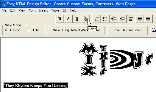 Step 2: You should now see the HTML Designer Form. This HTML designer and it's features probably looks very familiar to you. Almost all writing applications are setup with a similar interface as well as similar features. For example the "B" icon stands for "Bold", the "I" icon stands for "Italic" and the "U" icon stands for "Underline". You can probably figure out that the icon displaying a paint bucket spilling different colors is used for your font colors. Feel free to play around with this HTML Designer to get comfortable with all of the features. You can also use this HTML Designer to create web pages for your website. Would it suprise you to know that this entire help menu program was created by this same exact HTML Designer?